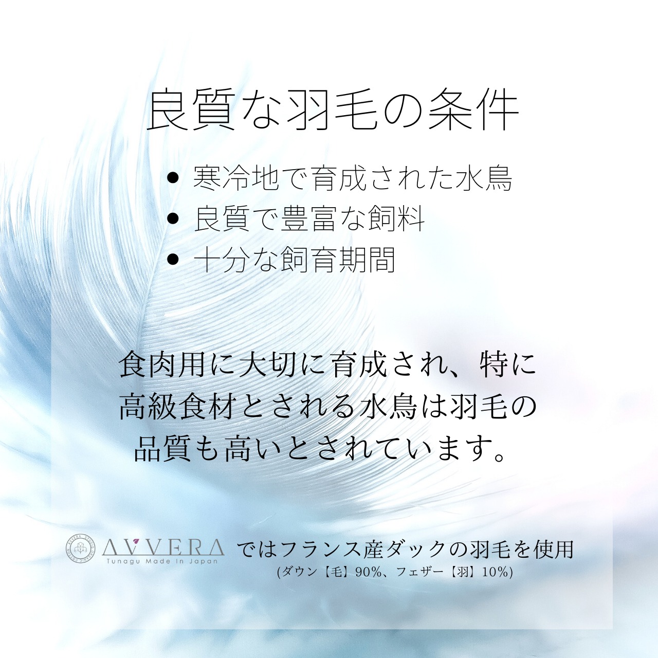 フランス産ダック(ダウン90%、フェザー10%)使用。