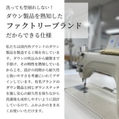 それは、羽毛の吹込みから縫製まで手掛ける、ダウン製品について熟知した工場によるファクトリーブランドだからこそ。設計の段階から耐久性と扱いやすさを考慮してデザインから縫製までを一貫して行っています。